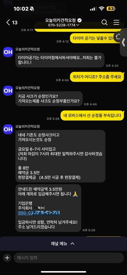 "오늘의카" 라는 어플로 한 업체로 견적과 방법을 소개 받았습니다.