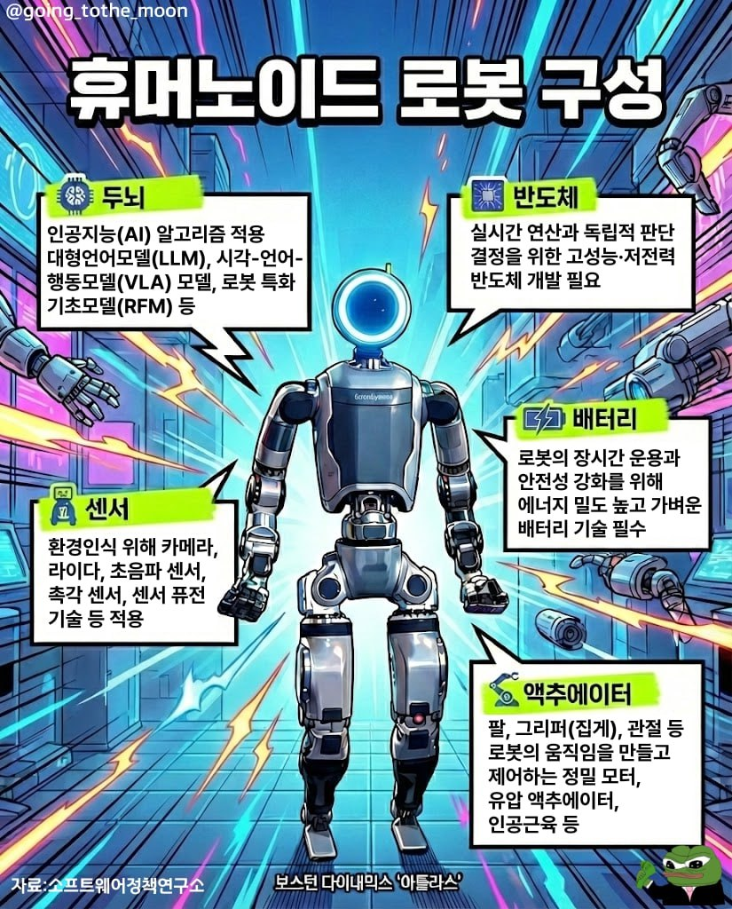 1) 두뇌 : 인공지능 알고리즘 적용, 대형언어모델 ,시각-언어-행동모델-로봇특화 기초모델등